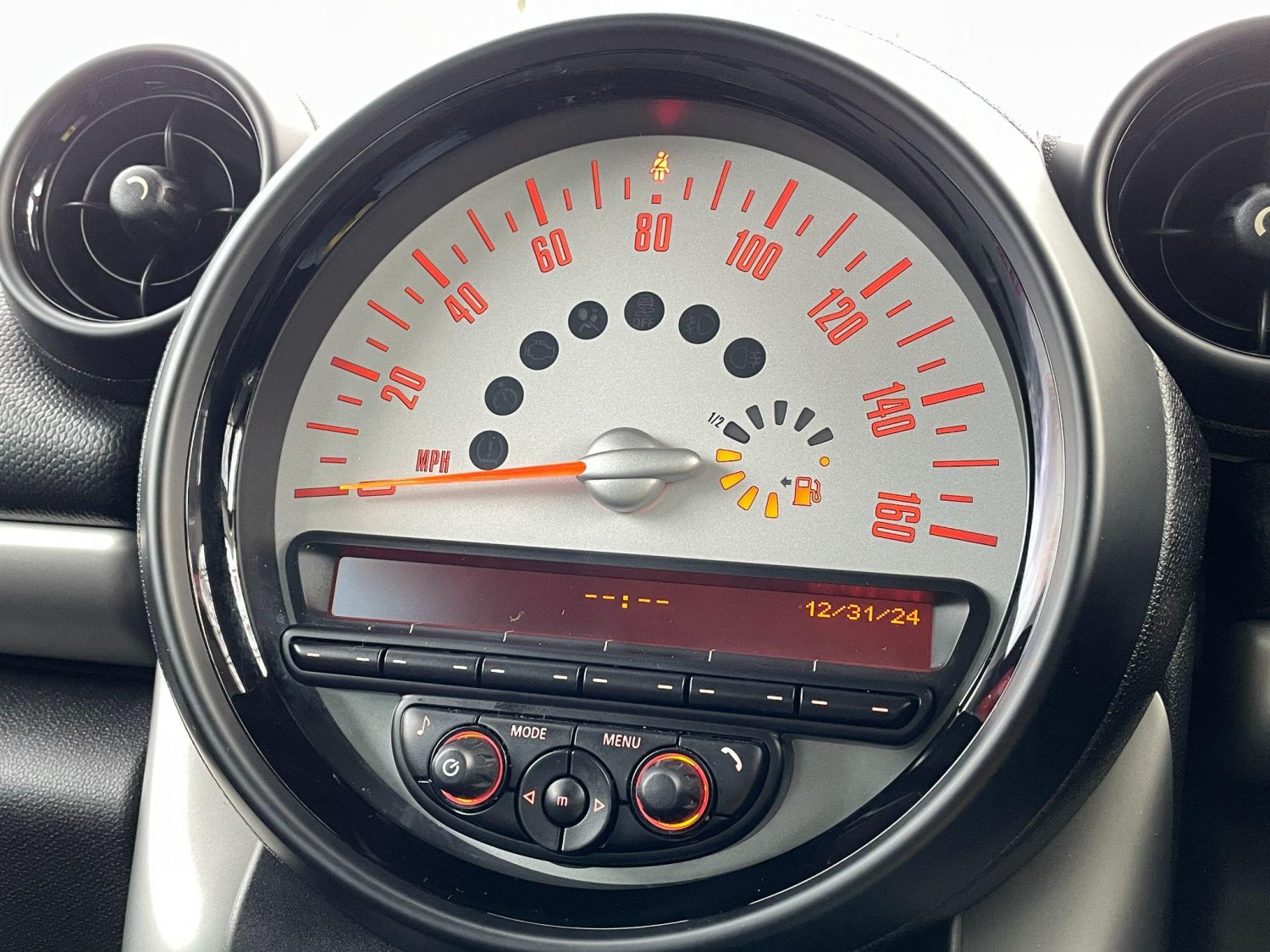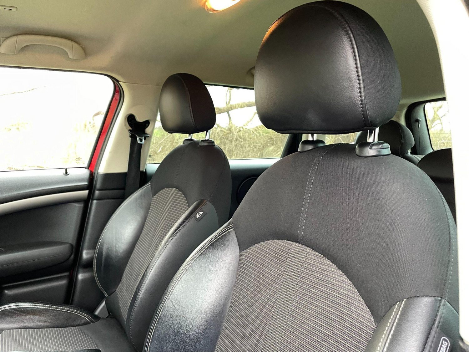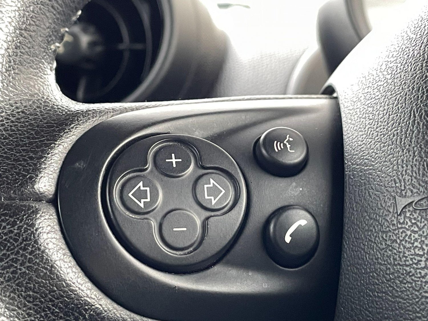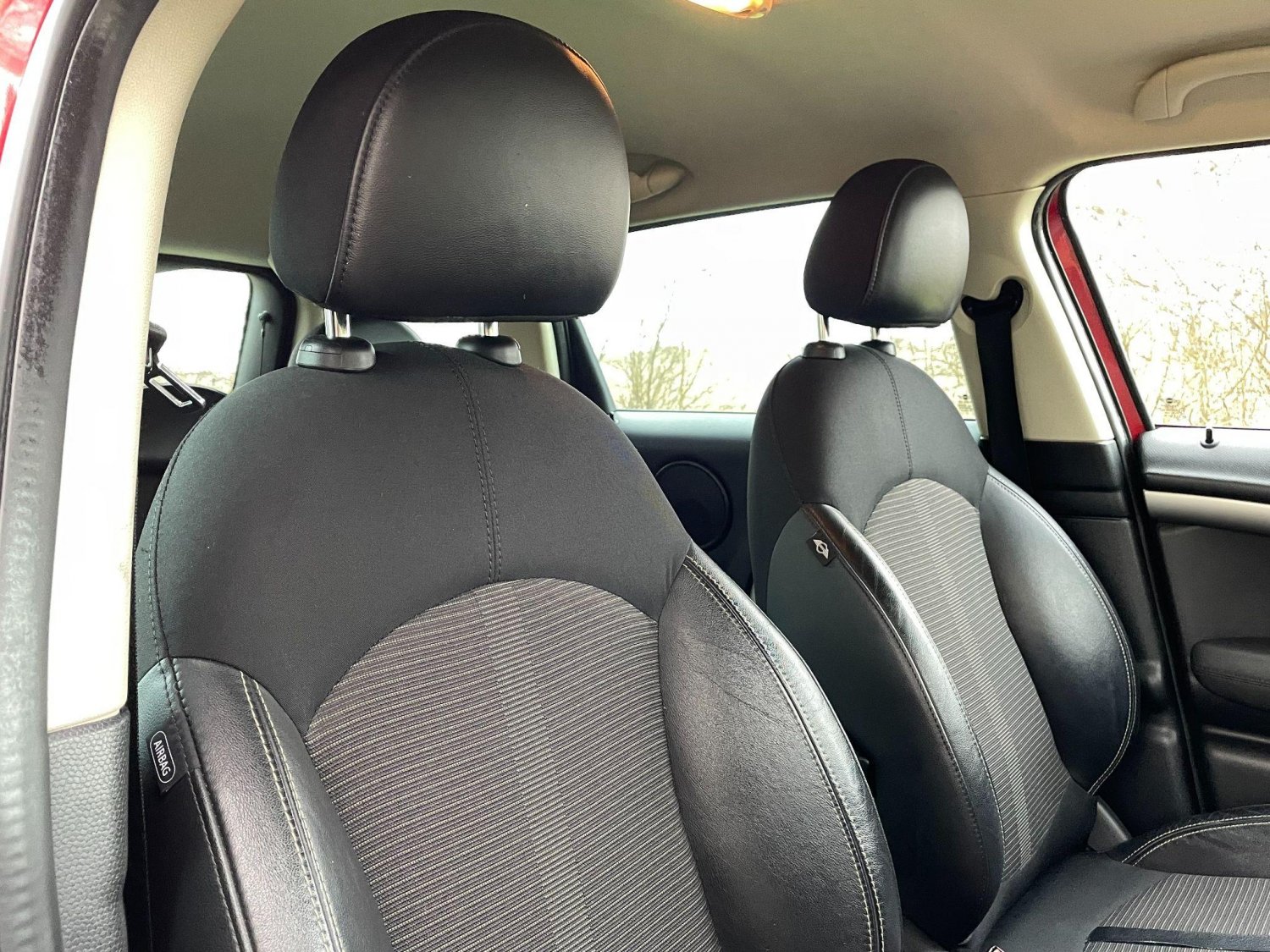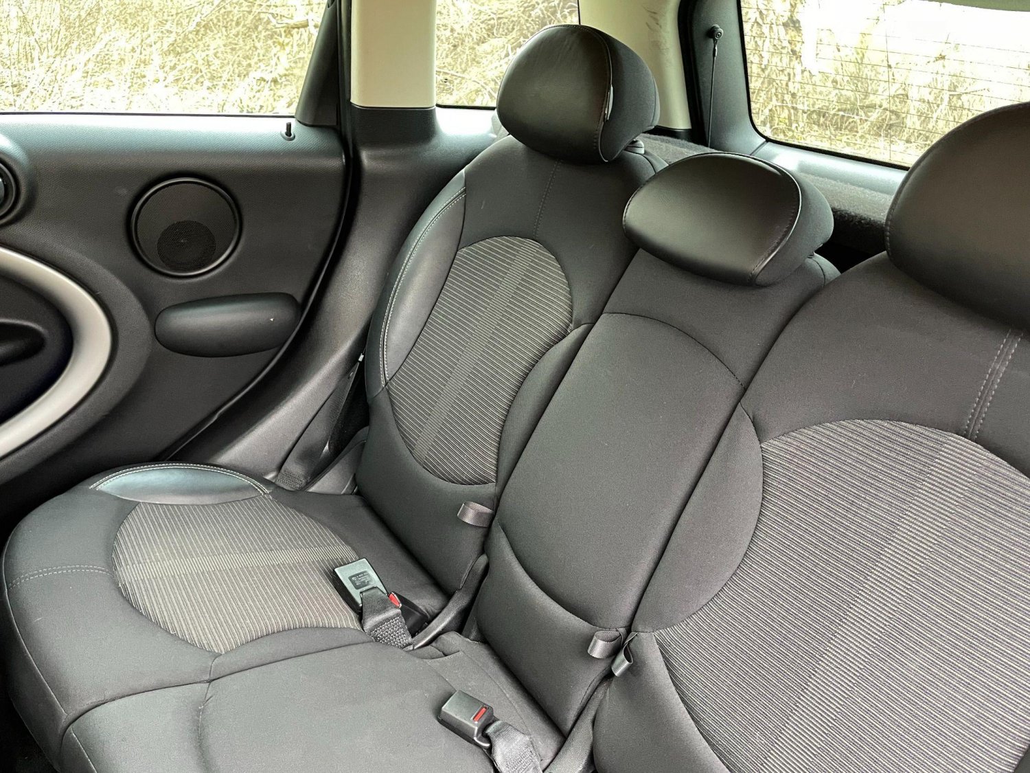 Sills-Bumper Edges-Wheel Arches - Black with Model-Specific Bumper Trims, Single Joint Spring Strut Front Axle, Speedometer Centred in Instrument Panel, Steering Column Height and Length Adjustment, Steering Wheel - 2-Spoke Plastic, Storage Options in the Trim Panels of Each Front Panel as well as Centre Console, Sun Visors with Integrated Vanity Mirrors on Drivers and Passengers Sides, TPWS - Tyre Pressure Warning System, Tailgate Release Incorporated within MINI Badge, USB Audio Connection, 16in Alloy Wheels - 5-Star Single Spoke Light, 3 Seat Rear Bench, 3rd Brake Light, Air Conditioning - Manual, Airbags - Driver, Airbags - Front Passenger, Airbags - Front Passenger with Deactivation Switch, Airbags - Front Side, Airbags - Head, Alarm - Thatcham CAT1, Anti-Lock Braking System - ABS, Aux-In Connection, Basic Bluetooth Function with USB Audio, Bike Rack Preparation at Rear, Brake Assist, Brake Pad Wear Indicator, CBC - Cornering Brake Control, Car Jack, Central Bass Hi-Fi System, Centre Rail, Child Seat ISOFIX Attachment, Cooled Glovebox, Crash Sensor - Fuel Cut-Off, Crash Sensor - Hazard Warning Flashers and Interior Light, Crash Sensor - Unlocking Doors, Cruise Control, DAB Tuner, DTC - Dynamic Traction Control, Door Handles - Chrome Plated, Door Handles - Interior - Chrome Plated, Door Mirrors - Electrically Adjustable and Heated, Door Sill Finishers - Metal Look and Model Dependent Lettering, Dynamic Stability Control - DSC, EBD - Electronic Brake-Force Distribution, Electric Windows - Front - One Touch Up and Down, Electronic Power Steering, Embellisher at Bottom Edge of All Windows - Chrome Plated, Exhaust Tailpipe - Visible Round Right with Chrome Finisher, Gearshift Lever Knob Plastic with Chrome Ring, Gearshift and Selector Lever Gaiters in Artificial Leather, Grab Handles, Halogen Lights for Low Beam and High Beam Headlights, Handbrake-Lever Grip Plastic with Central Push Button on Underside of Lever, Headlight - Beam-Throw Control Electrical with Manual Adjustment, Headlights - Chrome Bezels, Headlights - Follow Me Home, Headlining - Beige, Headrests For All Seats - Manually Adjustable, Heated Rear Window with Automatic Deactivation, Hill Assist, Interior Mirror - Mechanical Anti-Dazzle, Interior lights - Integrated into Centre Front Headliner including Two Reading Lights, Lashing Eyes in Luggage Compartment, Luggage Compartment - Light, MINI Mobility System, Microfilter, Mirror Caps in Body Colour, Multi-Link Rear Axle, Non Smoker Package, PDC - Park Distance Control - Rear, Personal Profile Functions for Each Remote Key, Radiator Grille - Silver with Frame Chrome Plated, Radio BOOST CD, Rev Counter, Roof Rails - Silver, Roof in Body Colour, Seats - 40:20:40 Split Rear Backrests, Seats - 60:40 Split for Fore-Aft Base Adjustment, Seats - Height Adjustable Drivers, Second Radio Remote Key, Security Locking Wheel Bolts