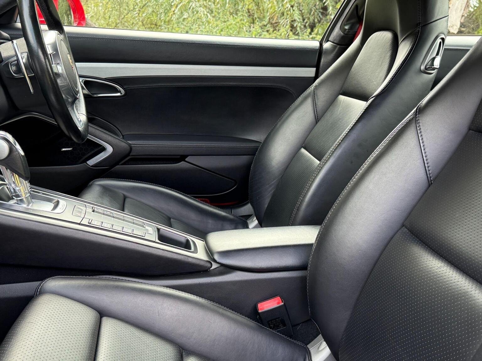 High specification includes Sport Chrono Plus Package, PASM electronic damper control, PTV+ with electronic rear diff lock, dynamic engine mounts, rear-axle steering, BOSE surround audio, PCM navigation/media with Bluetooth & DAB, 20” Sport Classic alloys in gloss black with coloured crests, heated 14-way electric sports seats with memory, brushed aluminium interior trim, Alcantara rooflining, LED DRLs, bi-xenon cornering headlights, park assist front & rear, rain sensor, automatic dimming mirrors, cruise control, and red seat belts.
